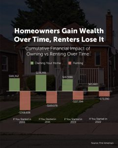 Speaking of down payments, I see buyers diversify by utilizing or borrowing against stocks and/or 401K funds, and the NAR survey revealed 26% of first-time buyers used these types of funds to achieve their homeownership goals. It is also not uncommon for some fortunate buyers to receive gift funds in order to achieve homeownership, and the NAR survey showed 22% of first-time buyers were able to utilize this route. With the big picture of building household wealth in mind and the fact that everyone needs a roof over their head, having your home be a part of your investment portfolio makes sense.