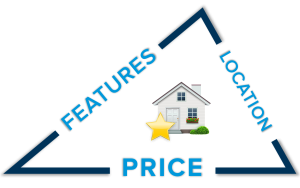 As you can see, this triangle is not a perfectly balanced triangle, some sides are adjusted more than others. A buyer may have to reduce the number of features they would like in order to obtain the price and/or location they desire. This gets them on the path of equity growth, though, so compromise and flexibility are key! You need to get clear on your goals and adjust the triangle to make it work.